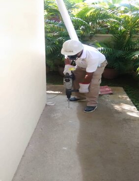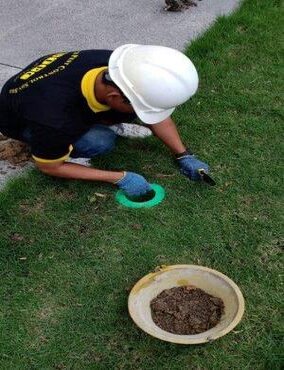 Baiting System employs strategic placement of Bait Monitoring Stations in and around a Building to ensure total colony elimination and protection against termites..